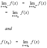 The first statement holds that the limit of the function as x approaches x0 from the left must be the same as the limit as x approaches x0 from the right. If this is true, then both limits are the same and we can refer to them collectively as just the limit of f(x) as x approaches x0. In other words, if the left-handed and right-handed limits are the same at a particular point, then there is a limit at that point.