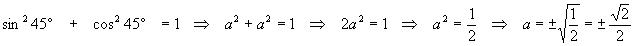 SolutionAccording to the identity, if we set a = sin 45o = cos 45o, we must have